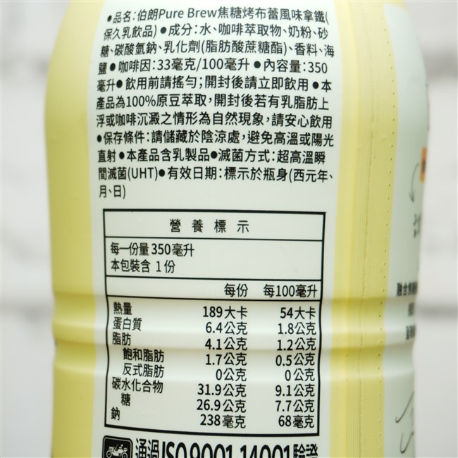 | 品名 | 伯朗Pure Brew焦糖烤布蕾風味拿鐵(保久乳飲品) |