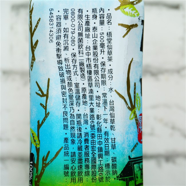 「泰山 梧堂 無糖仙草茶」の基本情報(原材料/栄養成分表示など)