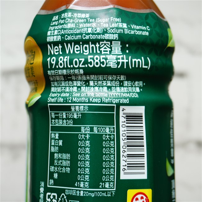 光泉 冷泡茶冷萃綠茶無糖 パッケージより引用