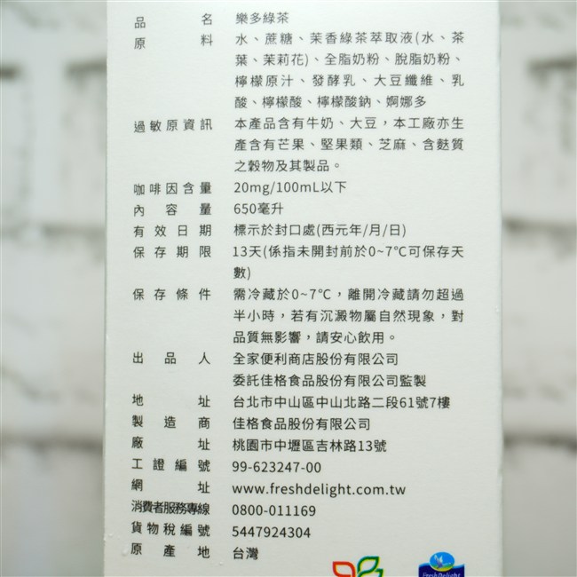 「Fami Collection 樂多綠茶(Yogurt Green Tea)」の基本情報(原材料/栄養成分表示など)