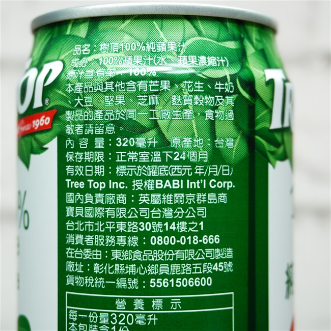 私は「TREE TOP 樹頂蘋果汁」を台湾の大手スーパー「全聯」にて?NTD(=約?円)で購入をしました。