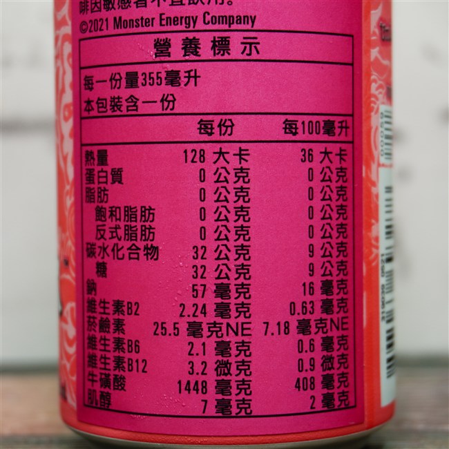 「魔爪 JUICED MONSTER 管浪潘趣™碳酸能量飲料 (モンスターパイプラインパンチ)」の基本情報(原材料/栄養成分表示など)