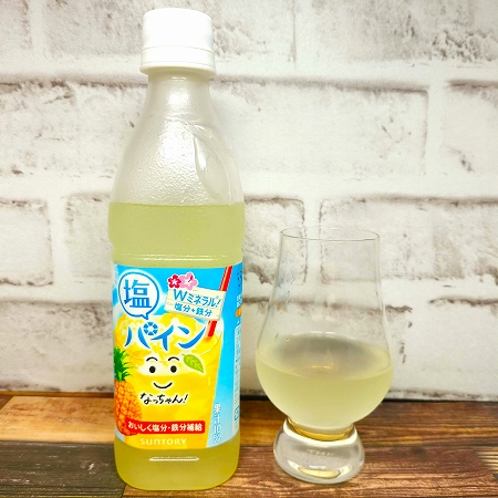 「なっちゃん 塩パイン」をテイスティンググラスに注いでみました。